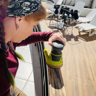 Our friend Murat helped us buy a fresh piece of timber that we could fashion into a tabletop for the dresser in the Greenhouse. It was a bit of a job getting the shape right. We were really careful not to mess it up because we didn't have time to start a new one! Luckily we didn't, and when we finally installed and oiled it, it looks great!